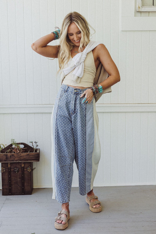 The Nest Wild At Heart Contrast Top - Off White Chambray