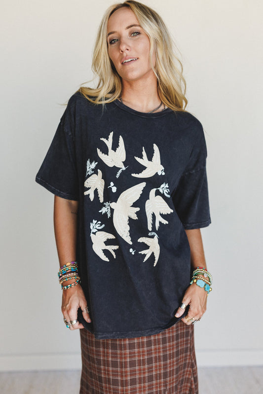 Doves Fly Graphic Tee - CharcoalRegular price $56.00Regular price $56.00 Sale priceUnit price per