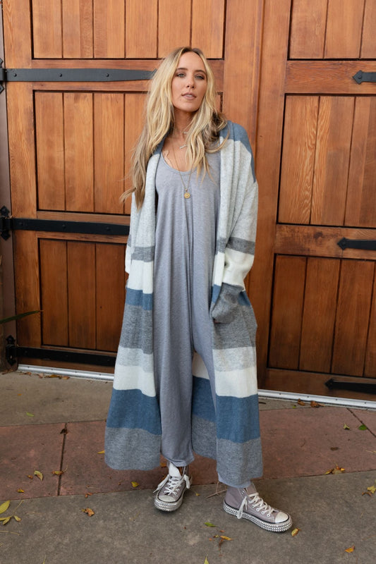 The Nest So Cozy Oversized Striped Knit Duster - Blue Multi