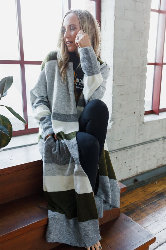 The Nest So Cozy Oversized Striped Knit Duster - Olive Multi