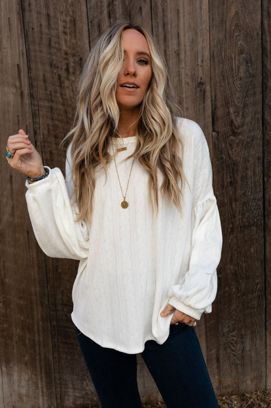 The Nest Sweet Heart Balloon Sleeve Knit Sweater - Cream
