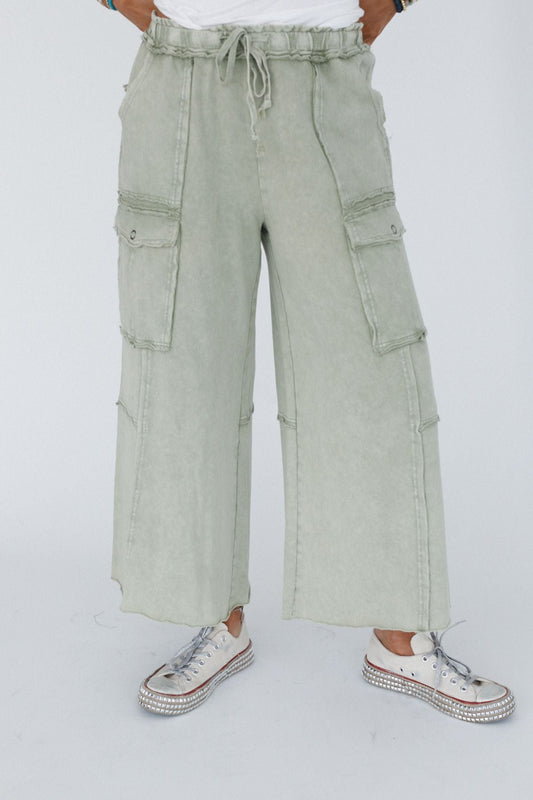 Game On Cargo Wide Leg Pant - Faded Olive