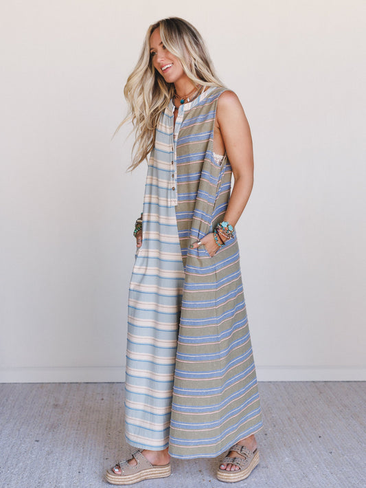 The Nest Cruise Lines Jumpsuit - Blue Olive