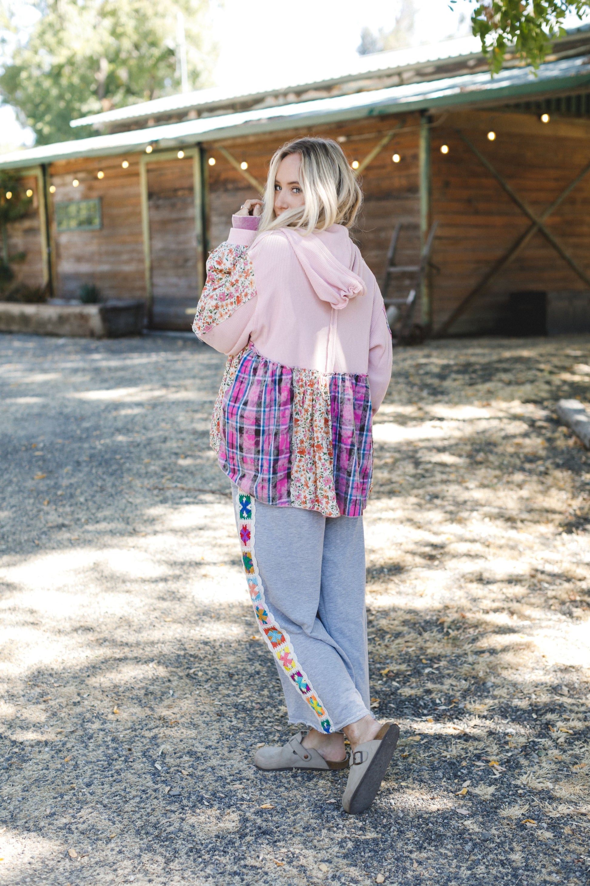 - Unique mix of thermal and woven fabric with so pretty floral and plaid prints throughout