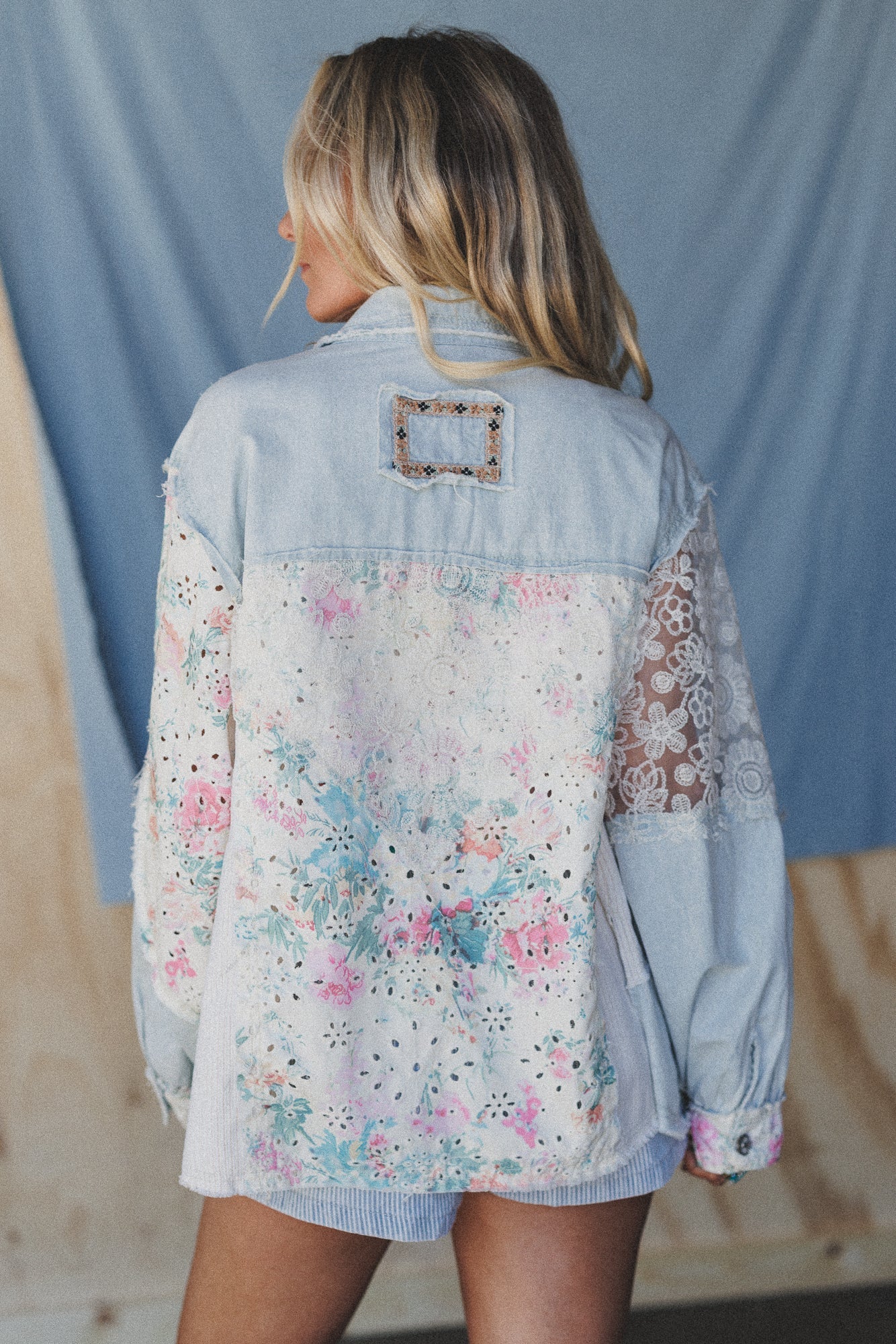 Hopeless Romantic Floral Lace Denim Jacket (Sized)
