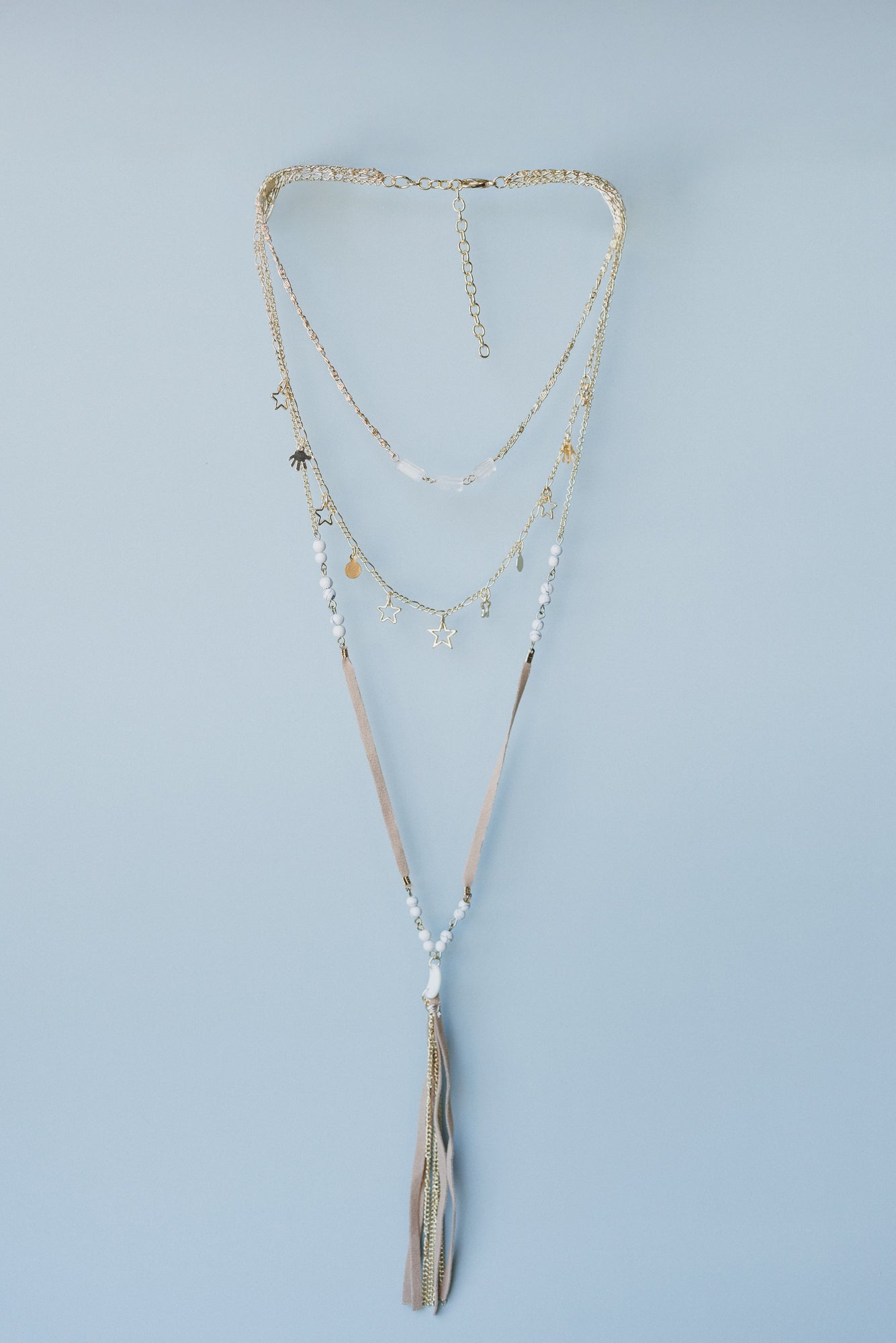• Add texture and shine to any evening look with this ornate layered necklace.