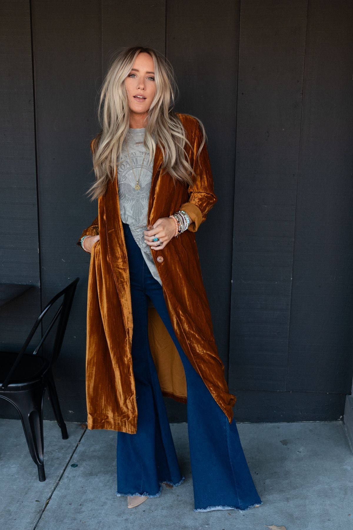 Get ready for non-stop compliments while wearing the City Walks Velvet Duster Coat, it's the finishing touch of the season!