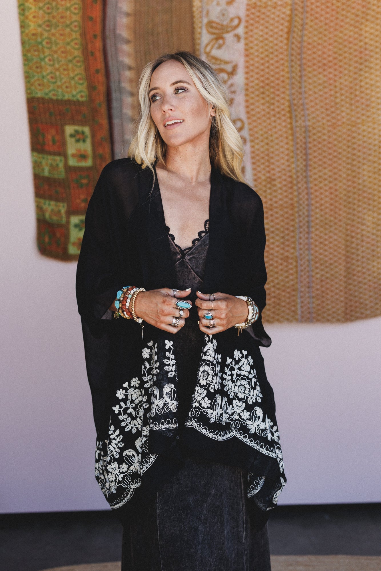 • Pair this light and flowy kimono with a brami and jeans for an easy elevated casual look.