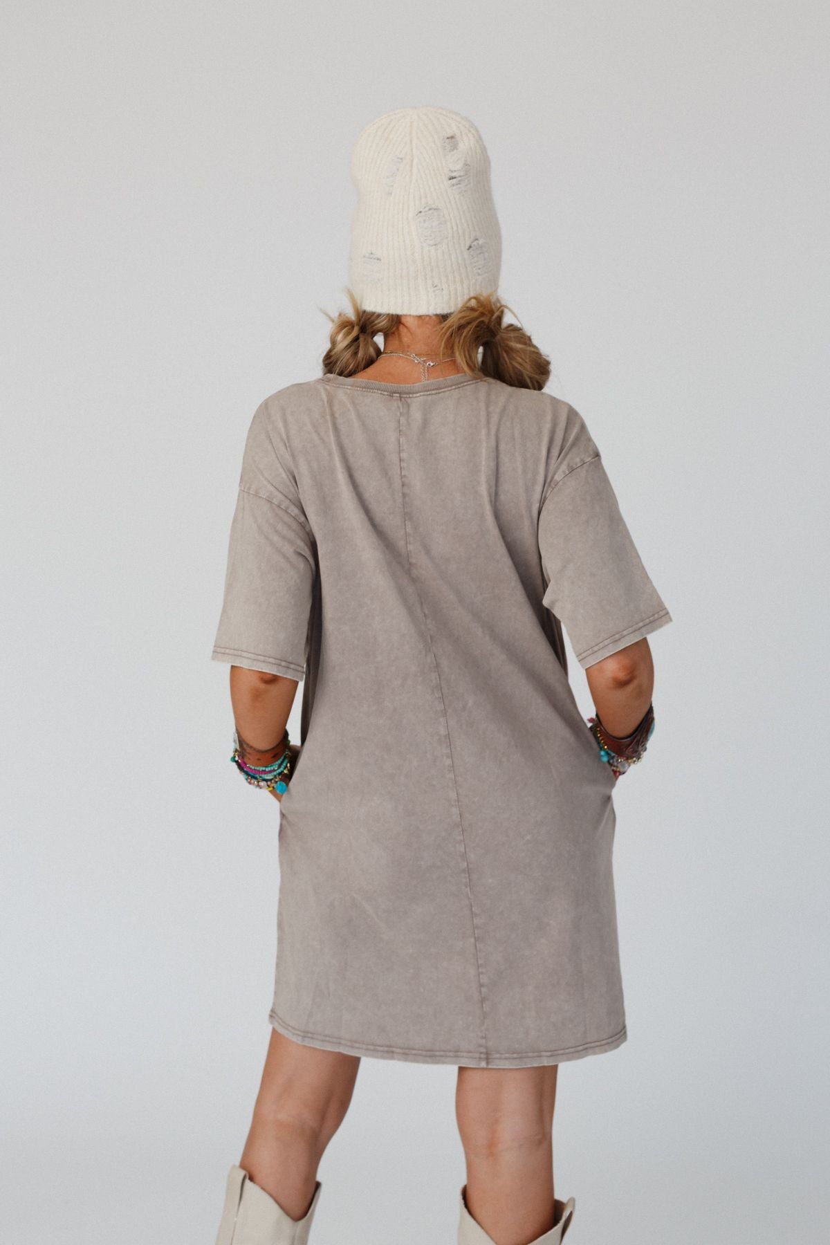 - Relaxed and loose tee shirt dress silhouette