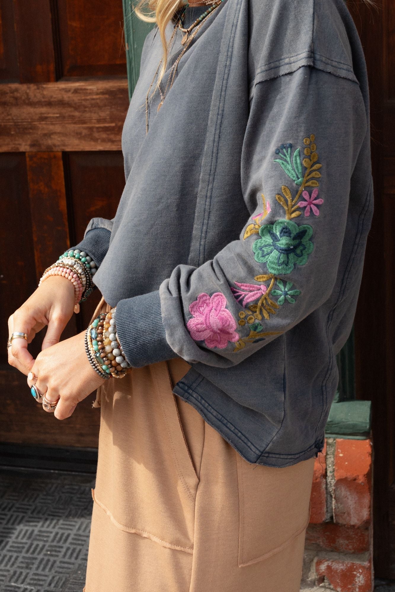 Embrace the perfect boho blend of comfort and style with this versatile piece, the Floral Muse Embroidered Top is unique with some floral charm that sets it apart!