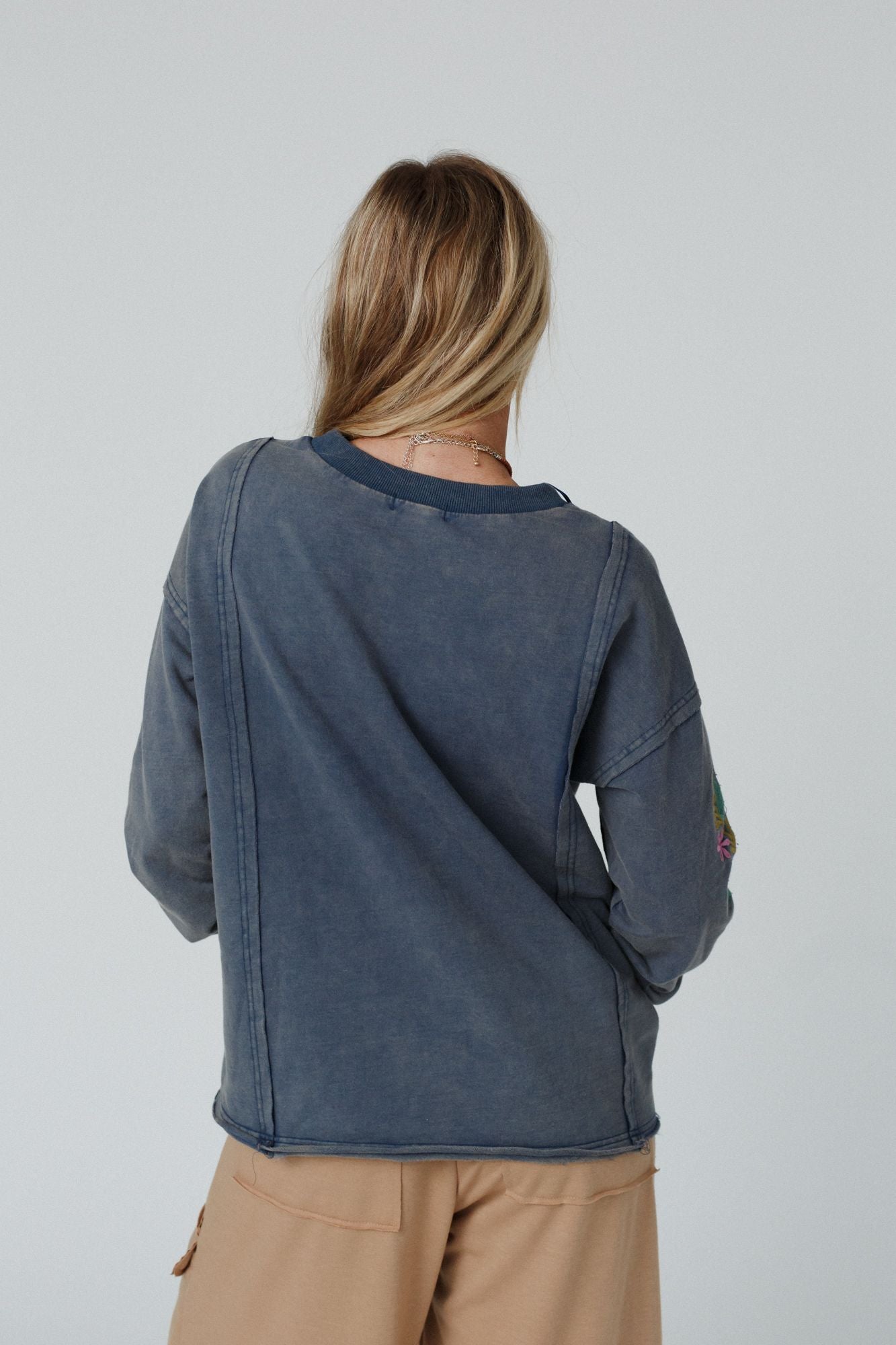 - Classic ribbed crew neckline and dropped shoulders with loose long sleeves and ribbed wrist closures