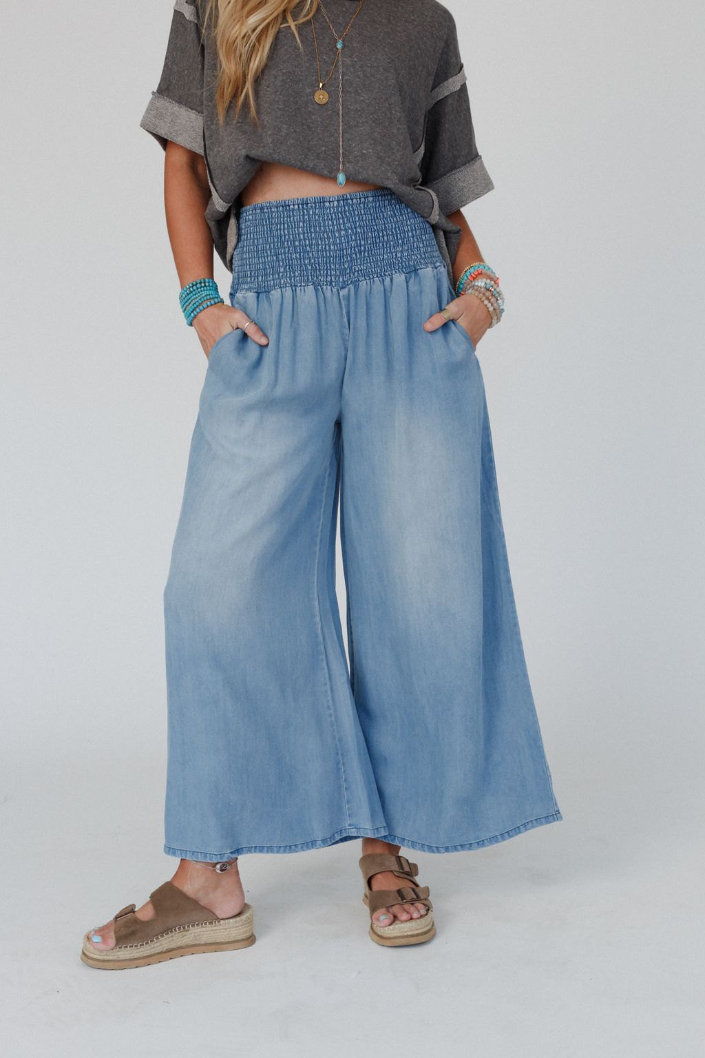 Never feel uncomfortable in a pair of jeans again with the Free Falling Wide Leg Pants!