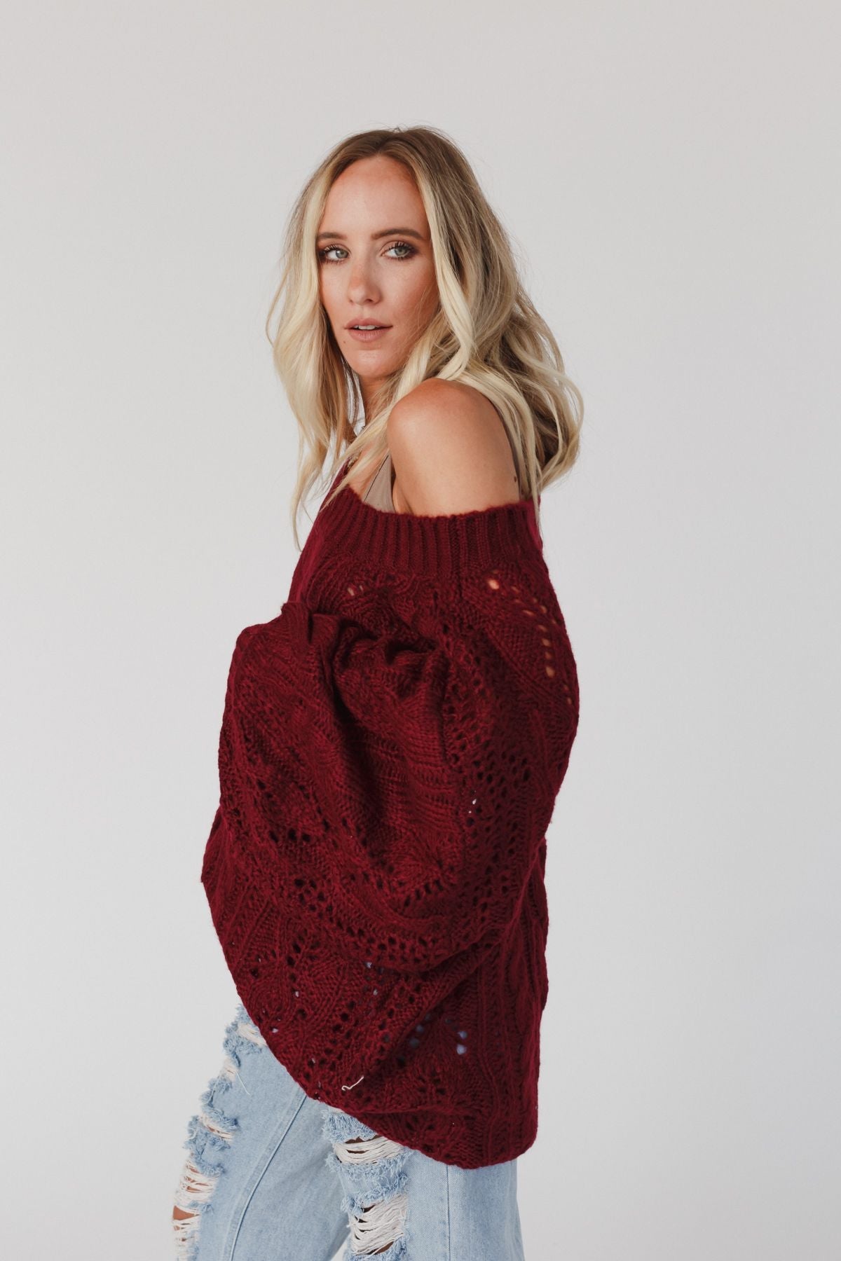 Golden Hour Bubble Sleeve Sweater Dress - Burgundy
