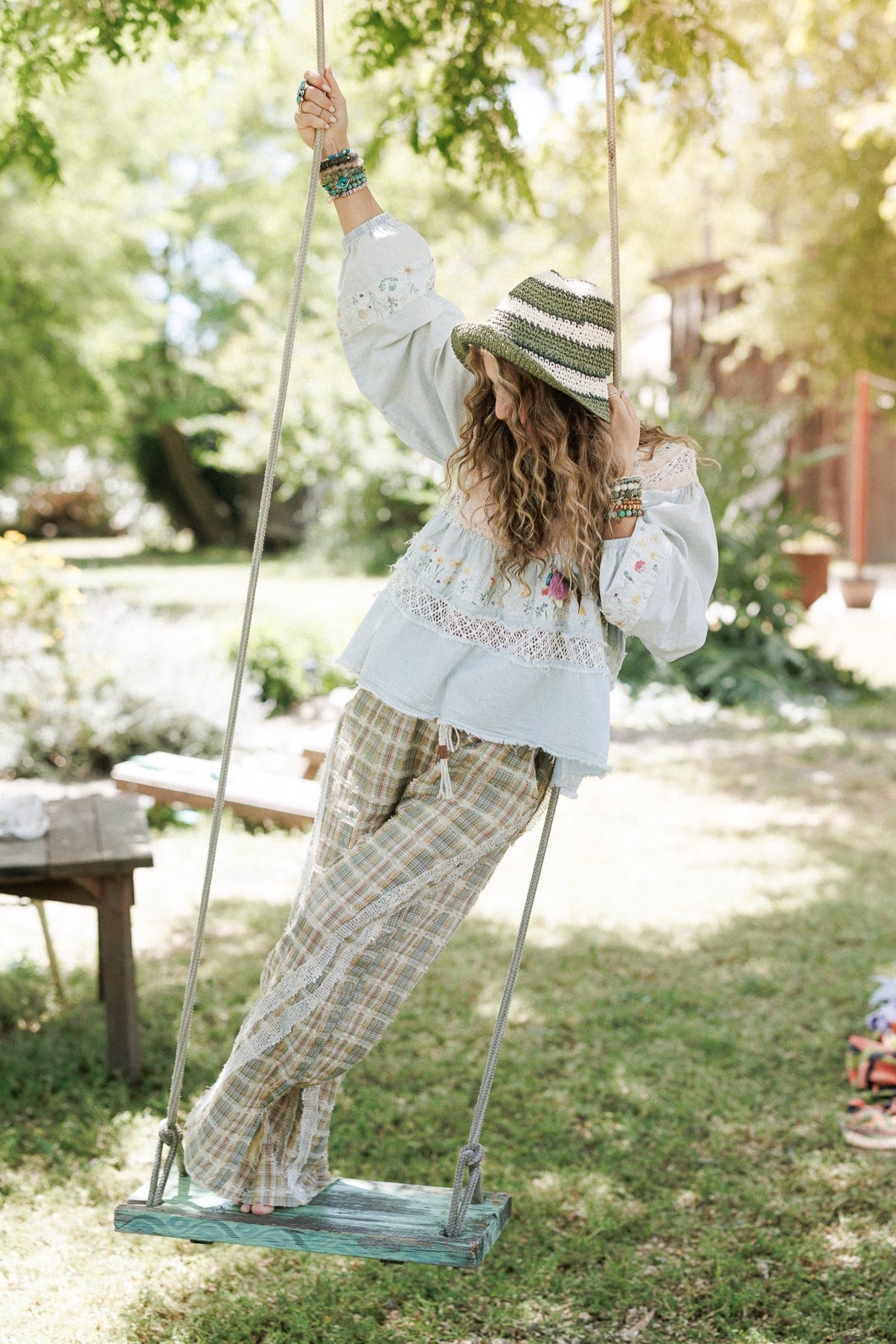 - This patchwork babydoll top is truly unique and easy to style with jeans and chunky sandals.