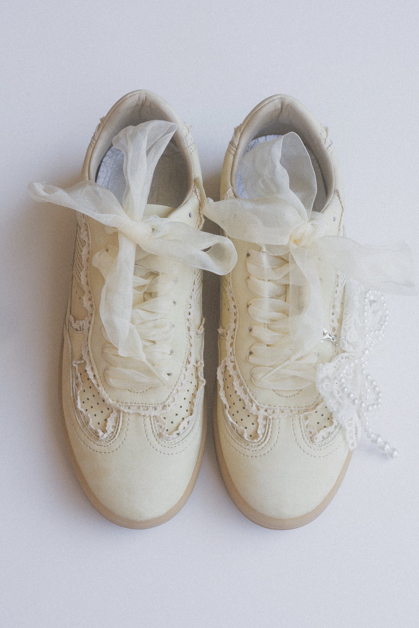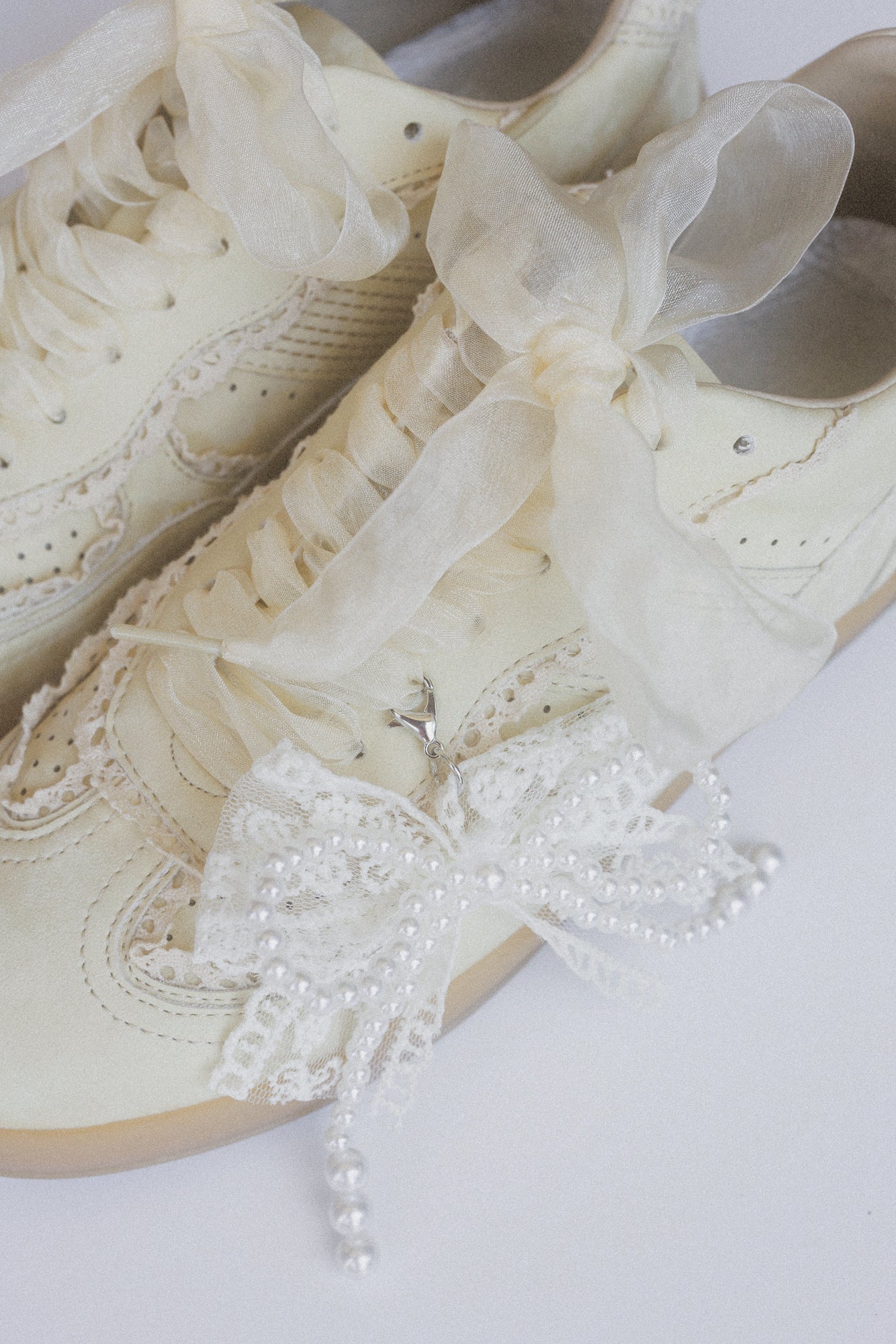 - Material: Vegan Leather Upper with Organza Laces & Charms