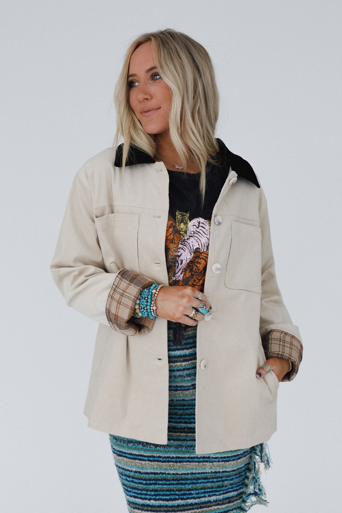 The Leni Plaid Corduroy Coat is sure to be your new favorite! Cozy and effortlessly chic, it’s perfect for adding a rustic boho vibe to your look. A must-have essential, the classic barn jacket will carry you from season to season!