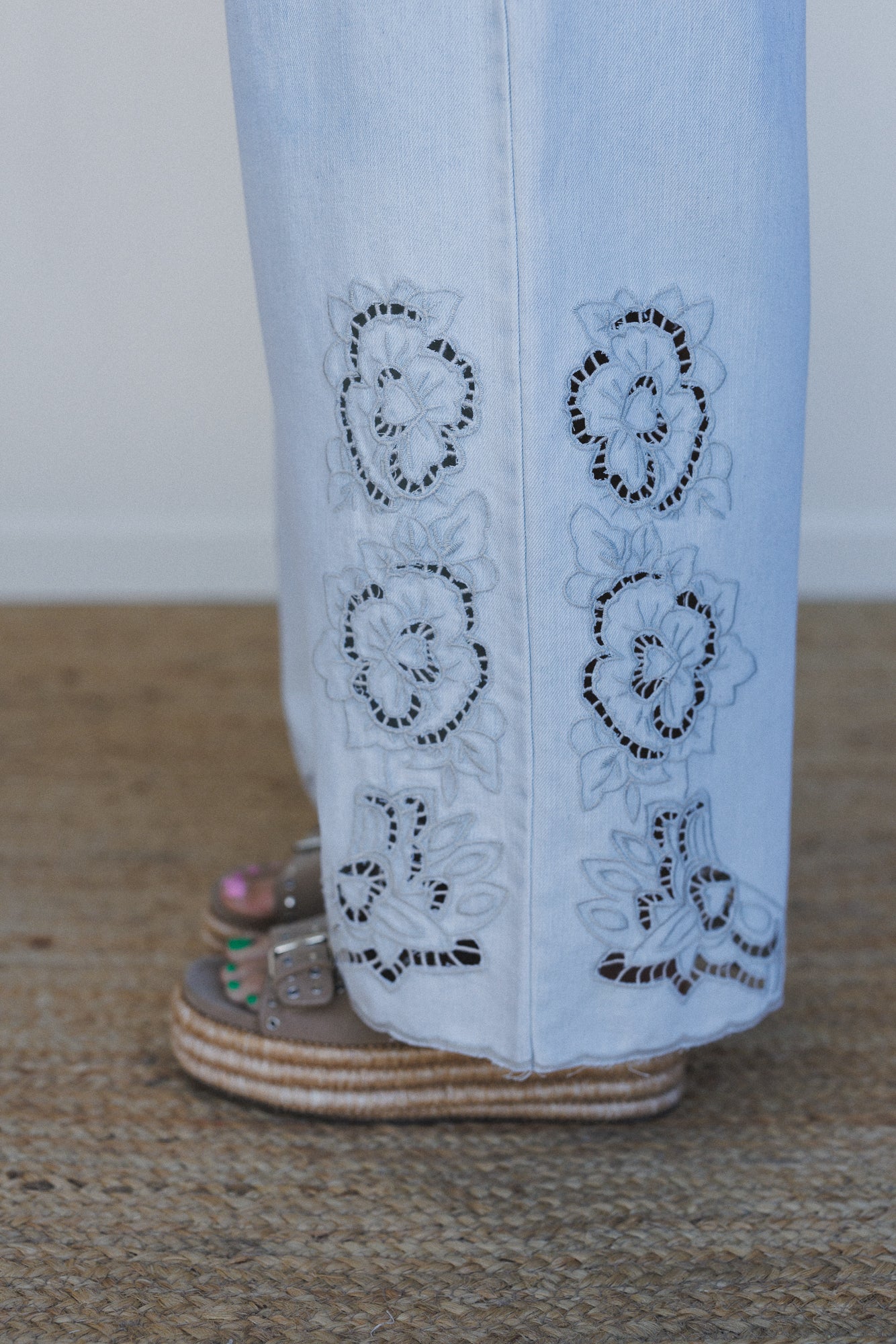 • Flowy, free, and fabulously boho—these embroidered denim pants are your new festival favorites. Dress them up with a lace top or keep it casual with a tee.