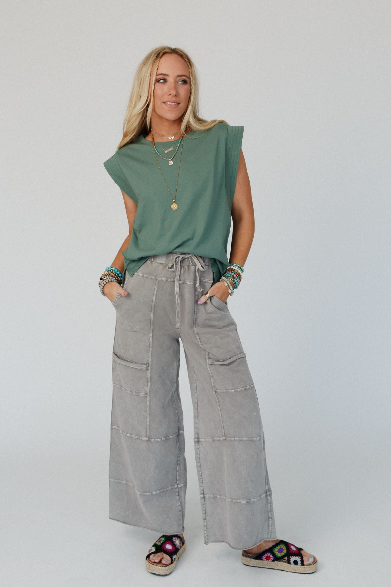 Lucky One Wide Leg Full Pant - Olive Gray