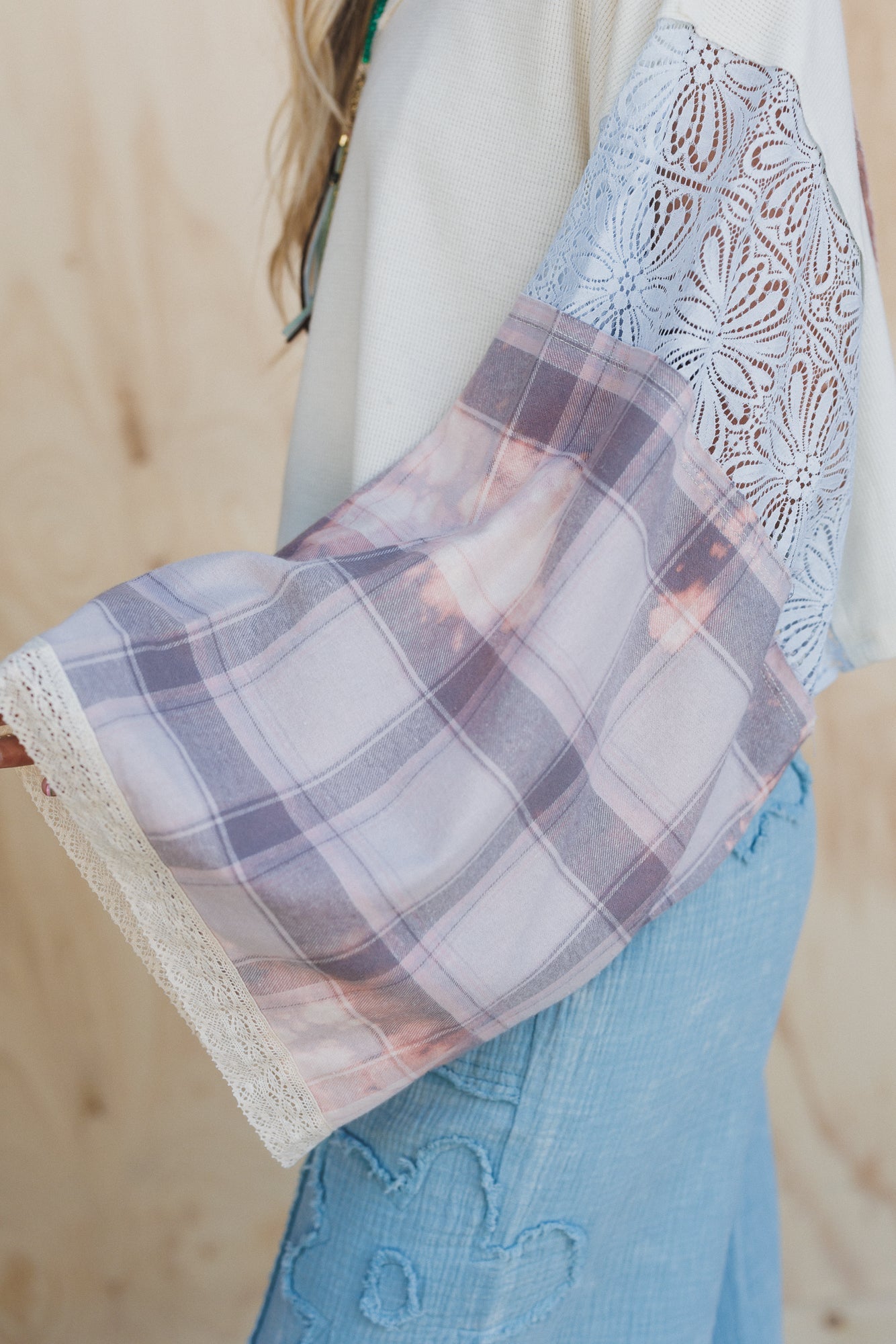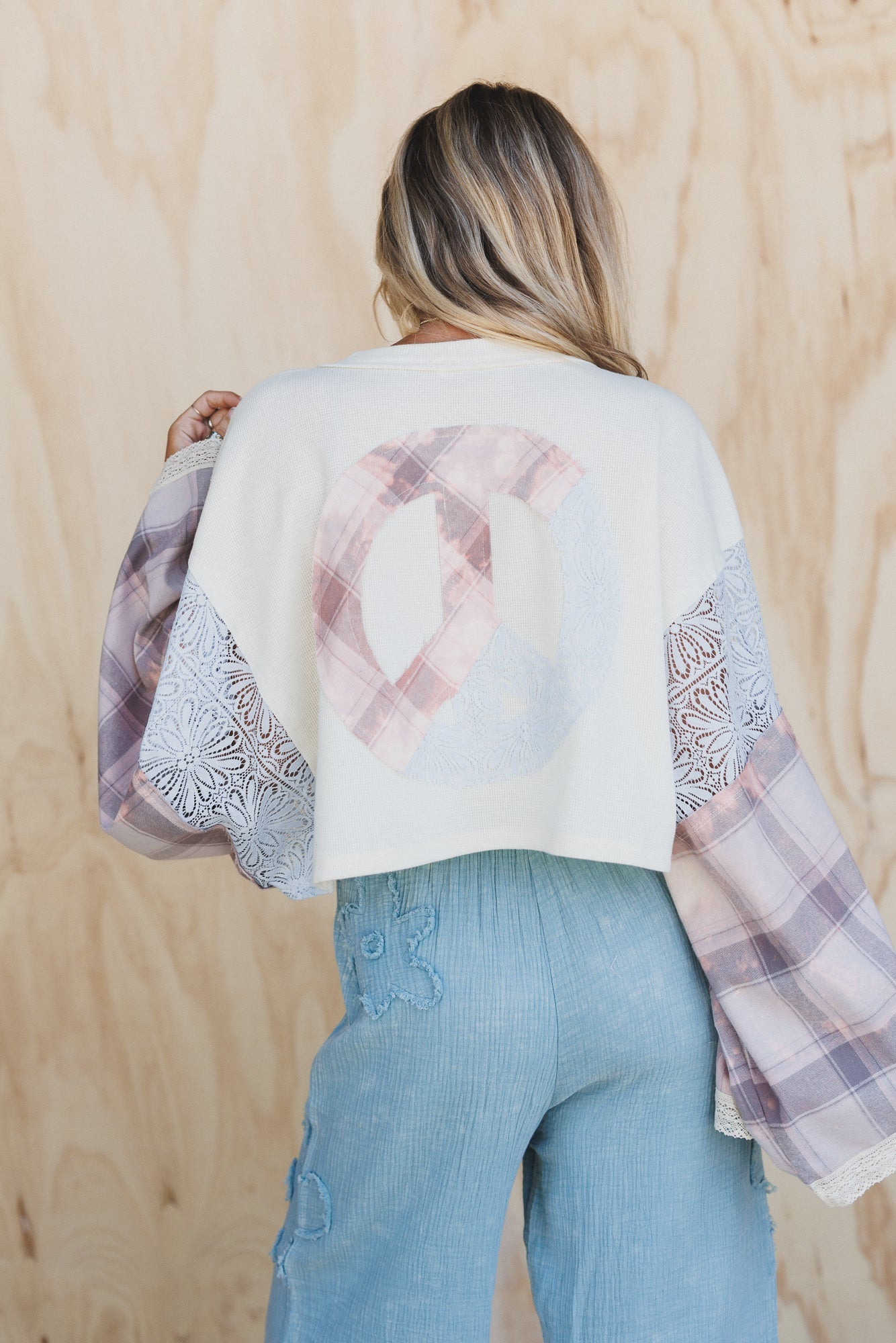 • This patchwork pullover is a super cute layer you can easily pair with wide leg jeans and sneakers.