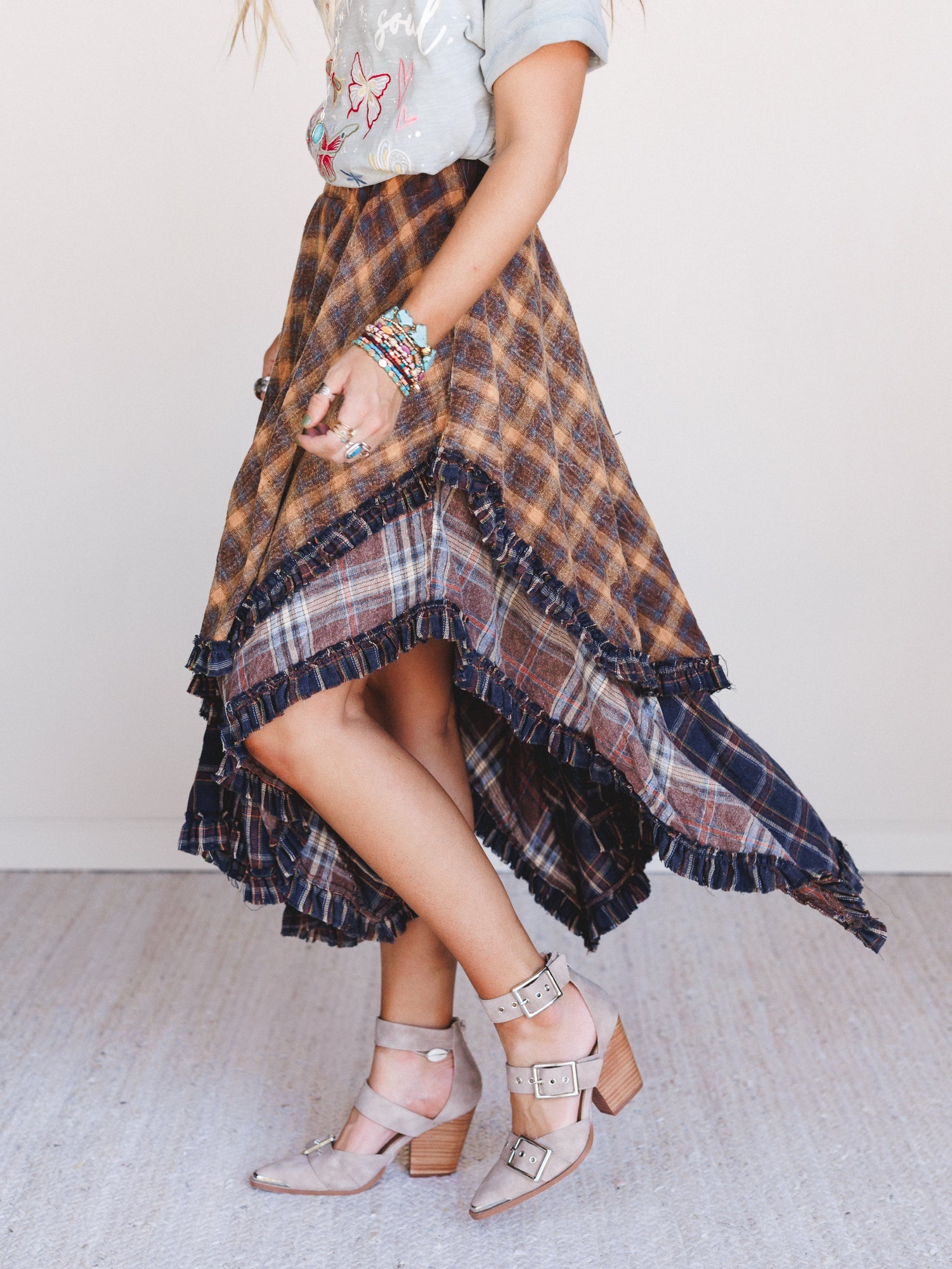 Spin, sway, and steal the spotlight in the Sand Dancer Plaid Skirt. With its layered ruffles and flowing plaid panels, this skirt was made for movement and magic.