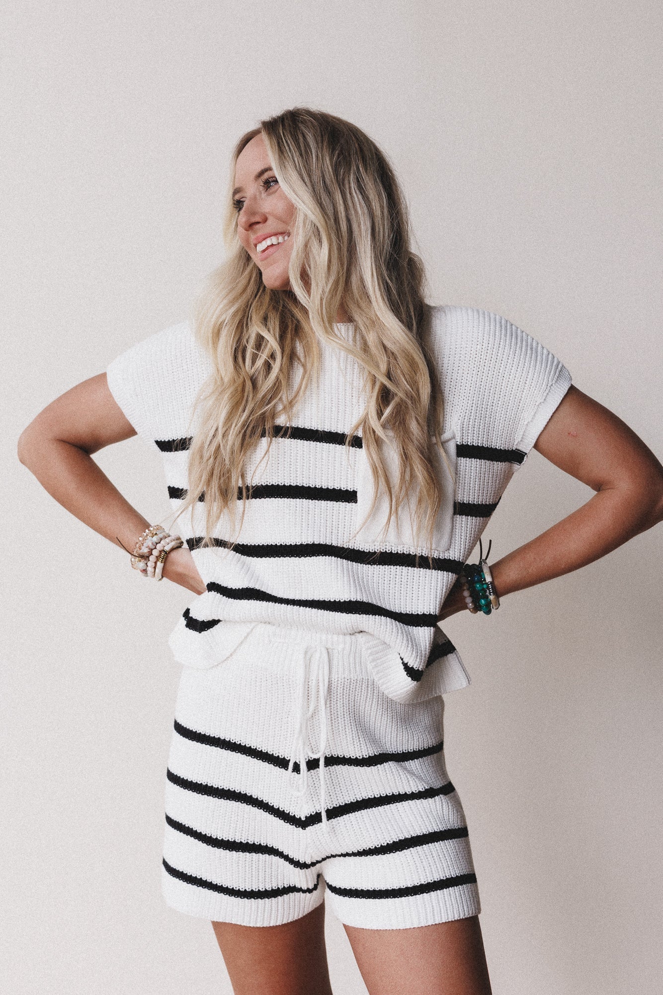 - Striped drawstring shorts