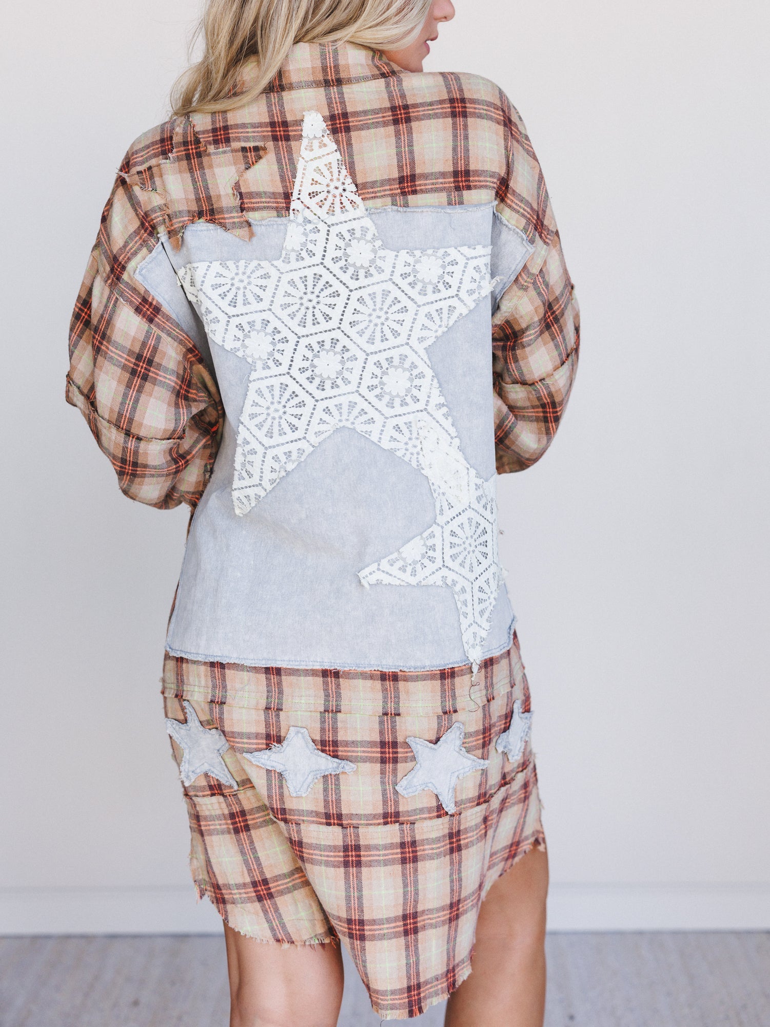 Bring a little stardust to your everyday with the Southern Twilight Button Down Dress. This vintage-inspired plaid beauty blends rustic charm with celestial flair, making it your go-to piece for road trips, festivals, and spontaneous coffee runs.