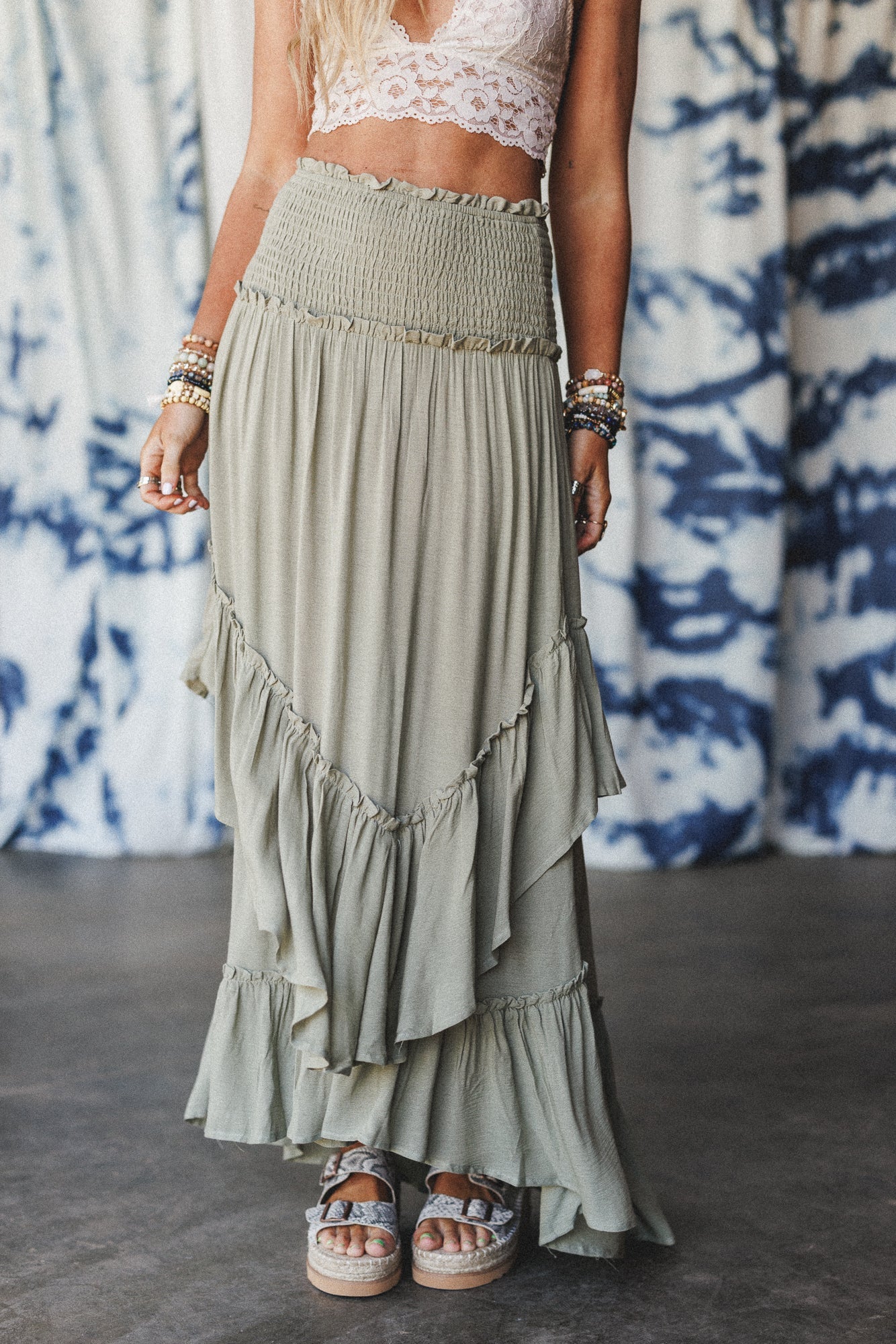 - This olive maxi skirt is your new go-to for festival chic looks in a snap.