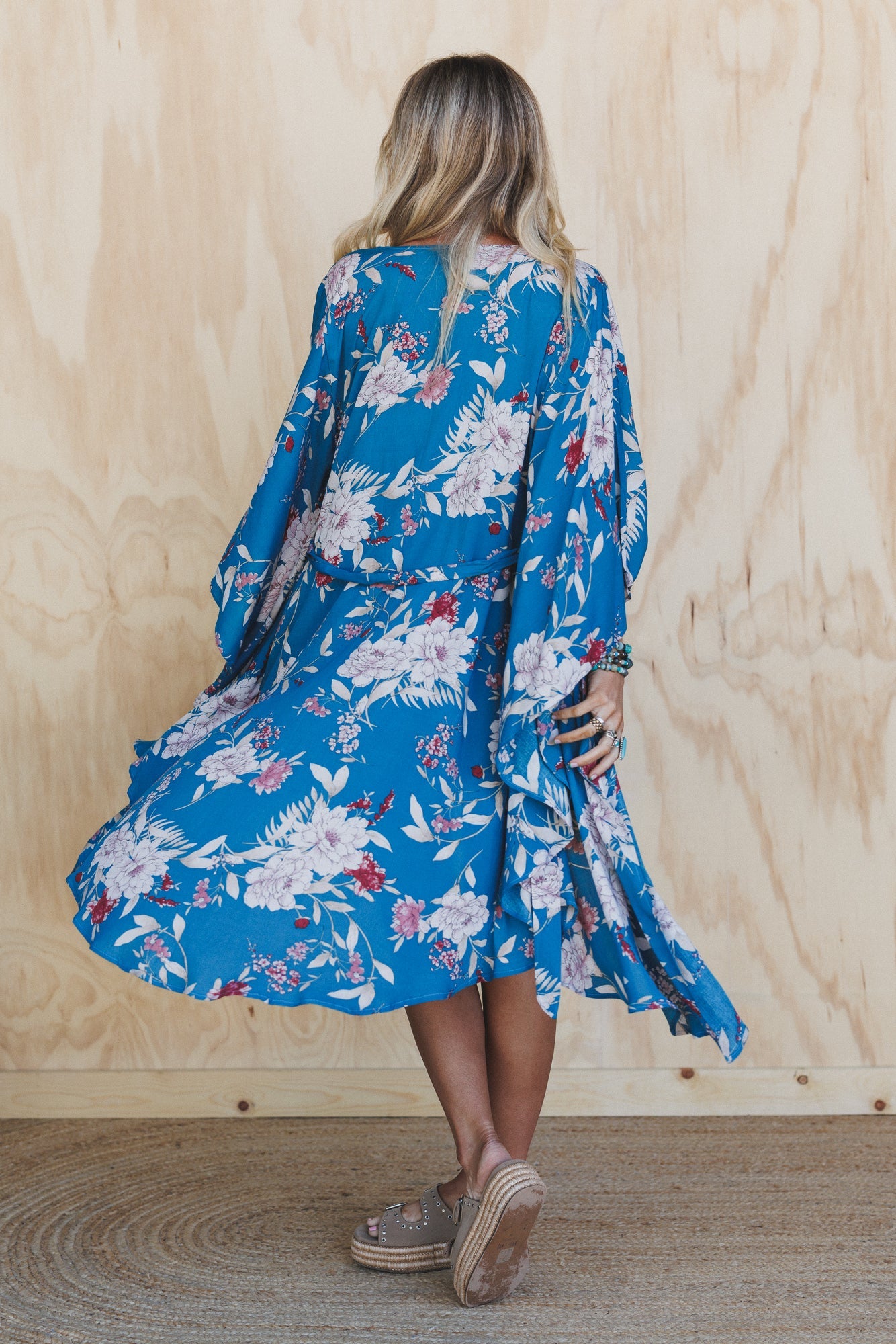 • A beautiful, flowy kimono featured in a lightweight, breathable fabric with butterfly sleeves, a maxi length, and a floral pattern.