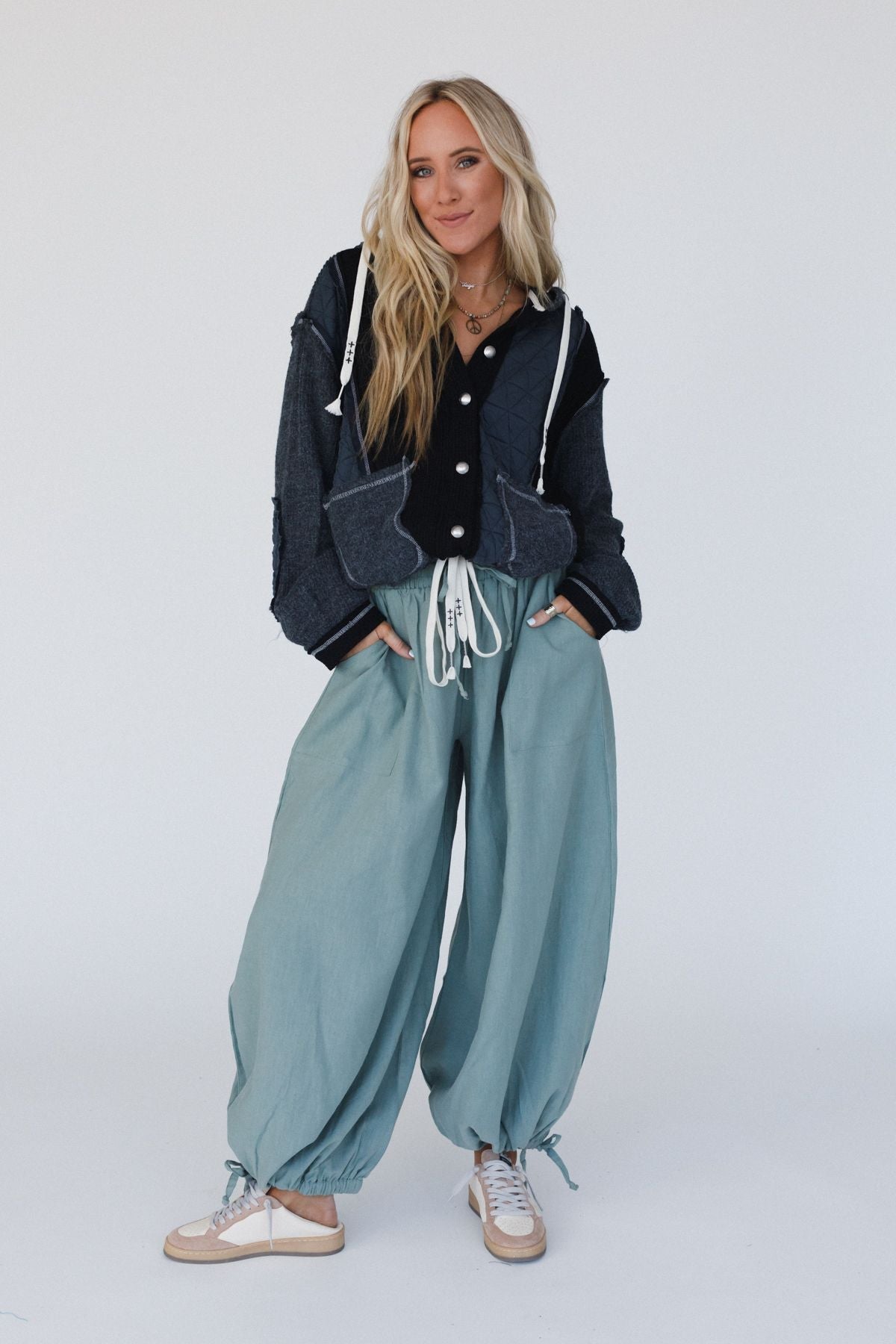 The Nest Theadora Wide Leg Cinched Pants - Light Olive