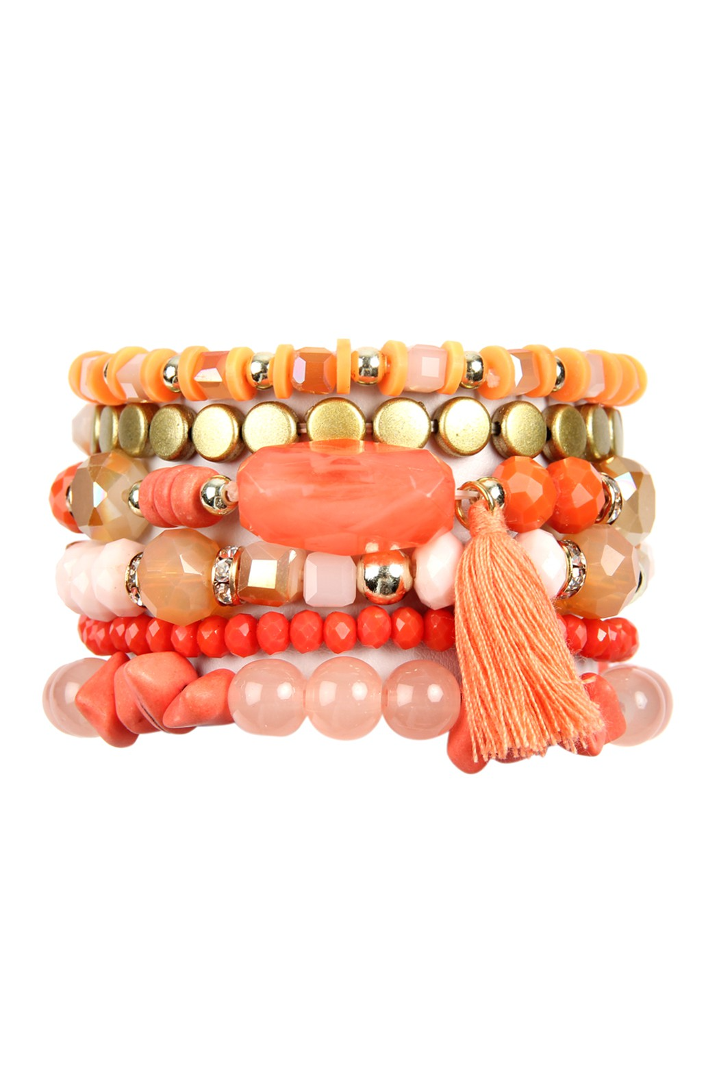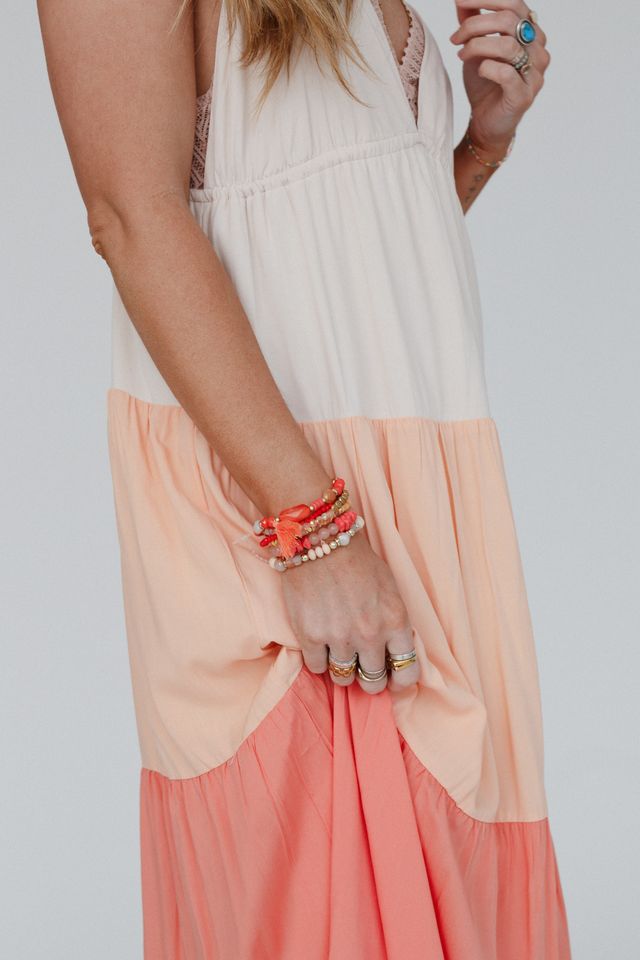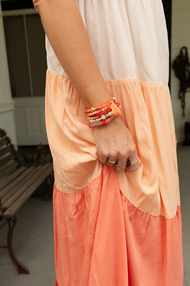 Theo Beaded Bracelet Set - Coral