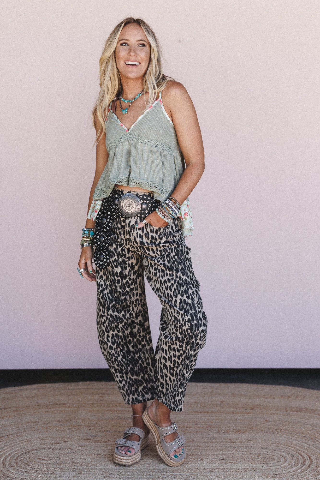 Thrill Seeker Leopard Barrel Jeans (Sized)