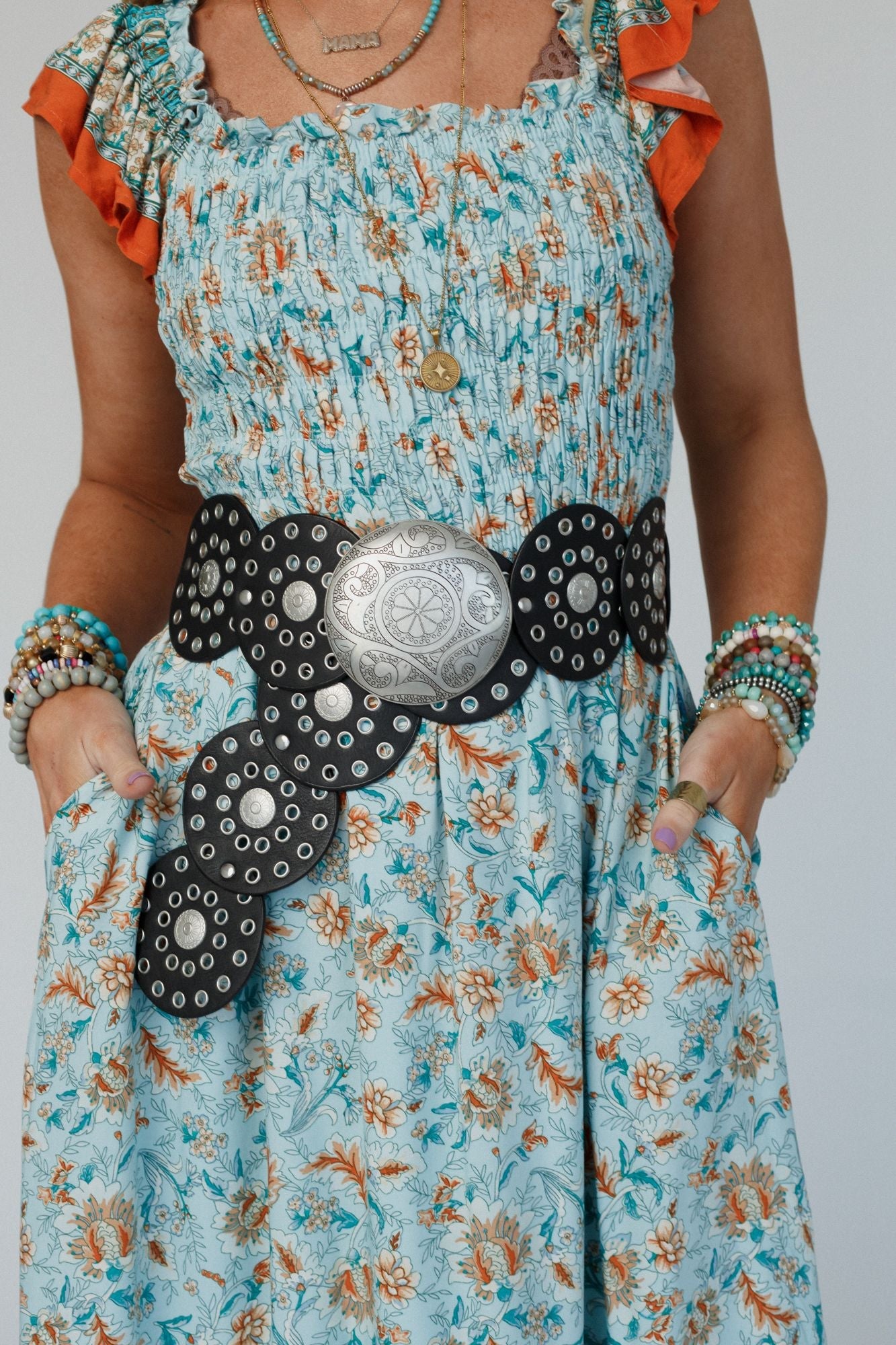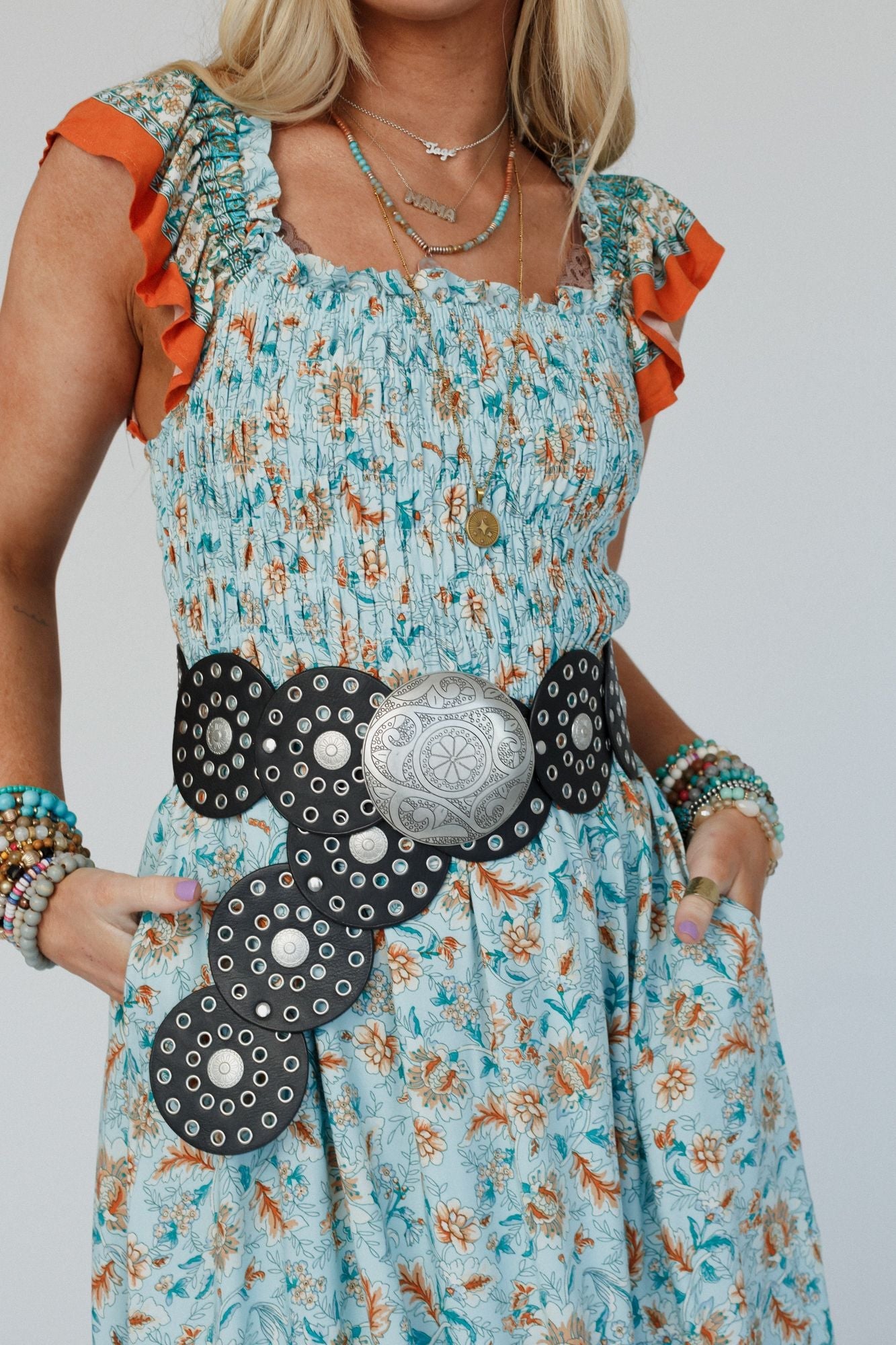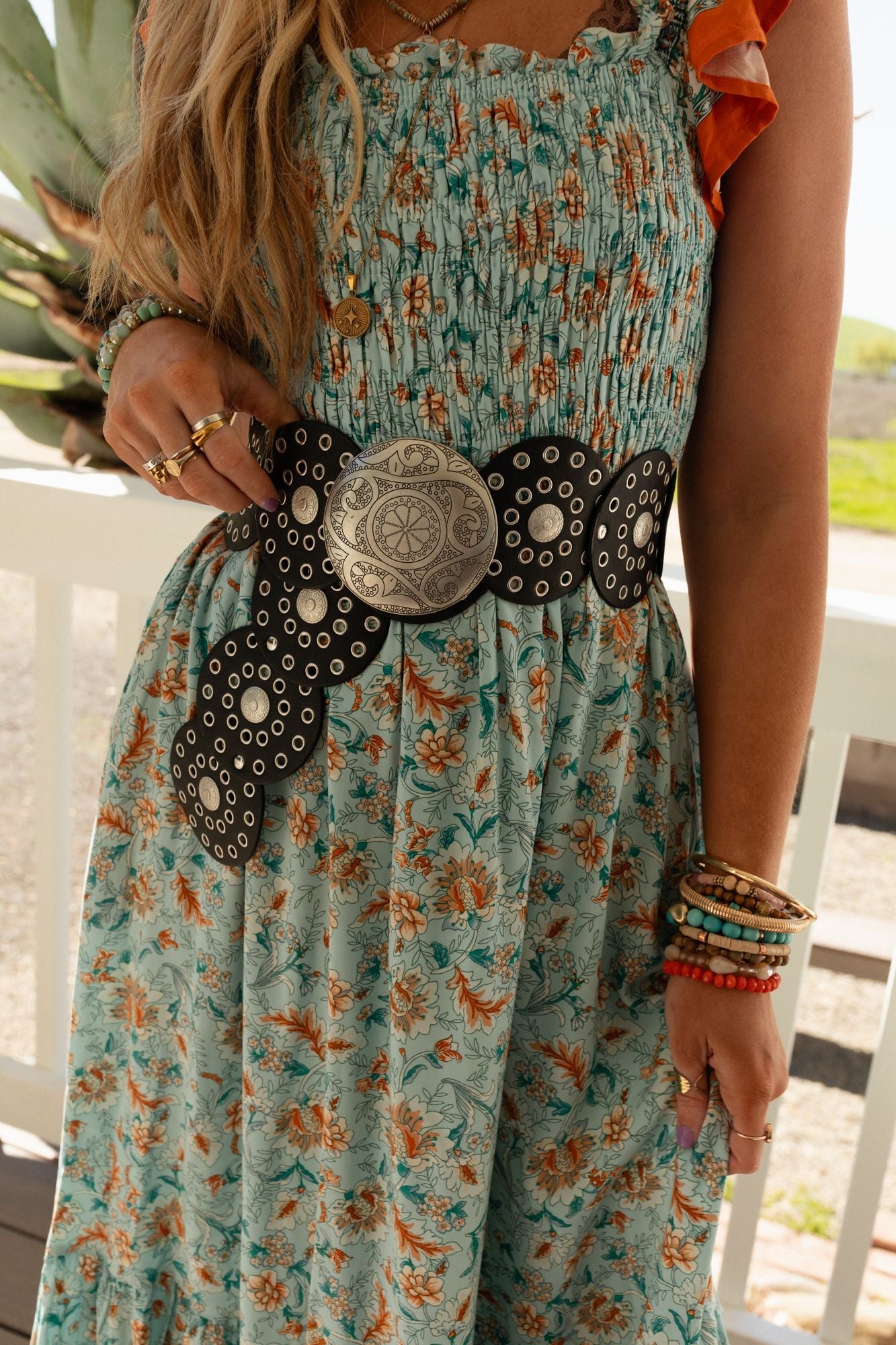 Embrace the spirit of the Wild West with our Western Sunrise Belt, a striking accessory that exudes rustic charm and timeless bohemian elegance. Whether cinching your waist over a flowing maxi dress or adding a touch of Western flair to your favorite denim ensemble, this belt effortlessly elevates any outfit with its cool, rustic vibe!
