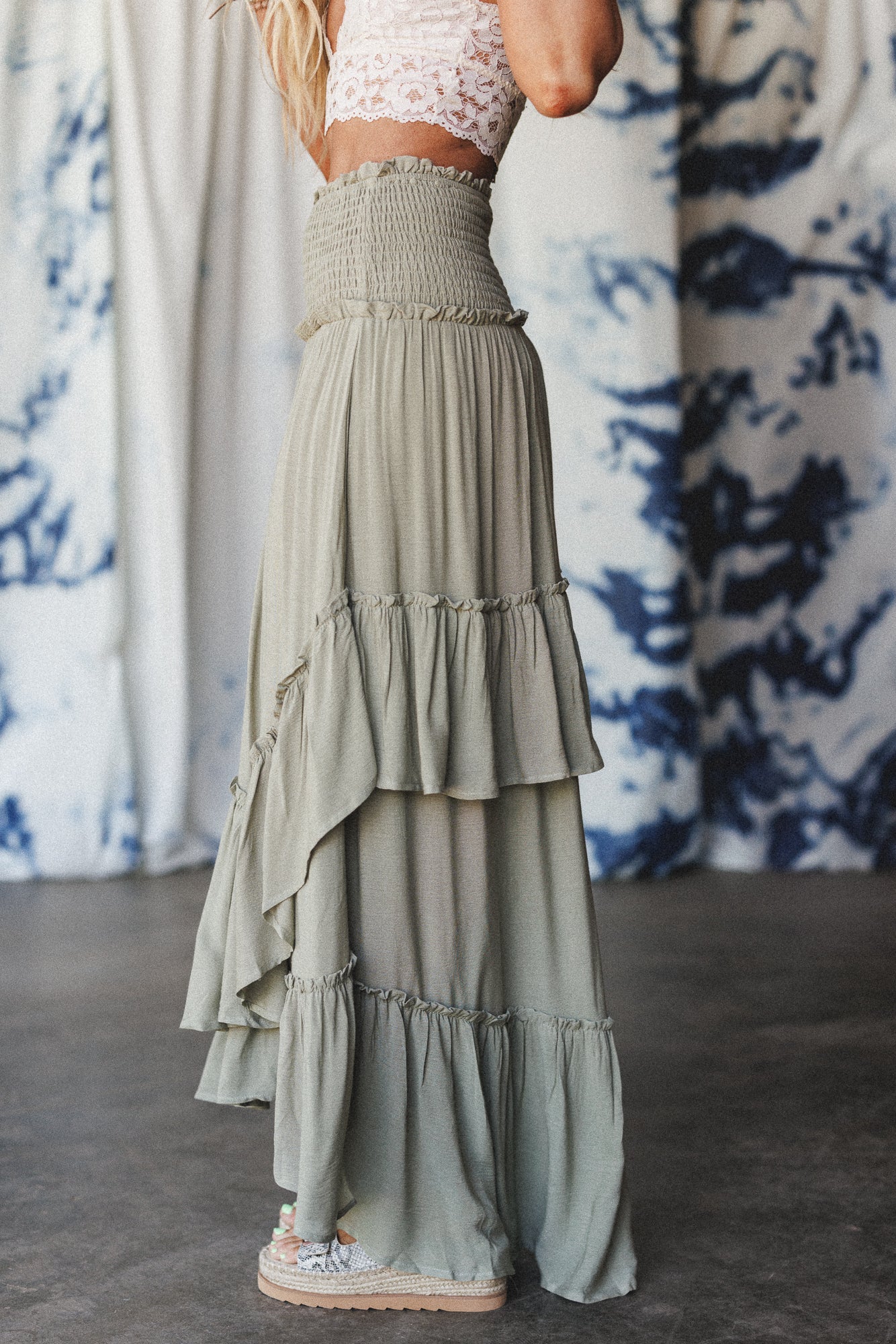 • This olive maxi skirt is your new go-to for festival chic looks in a snap.