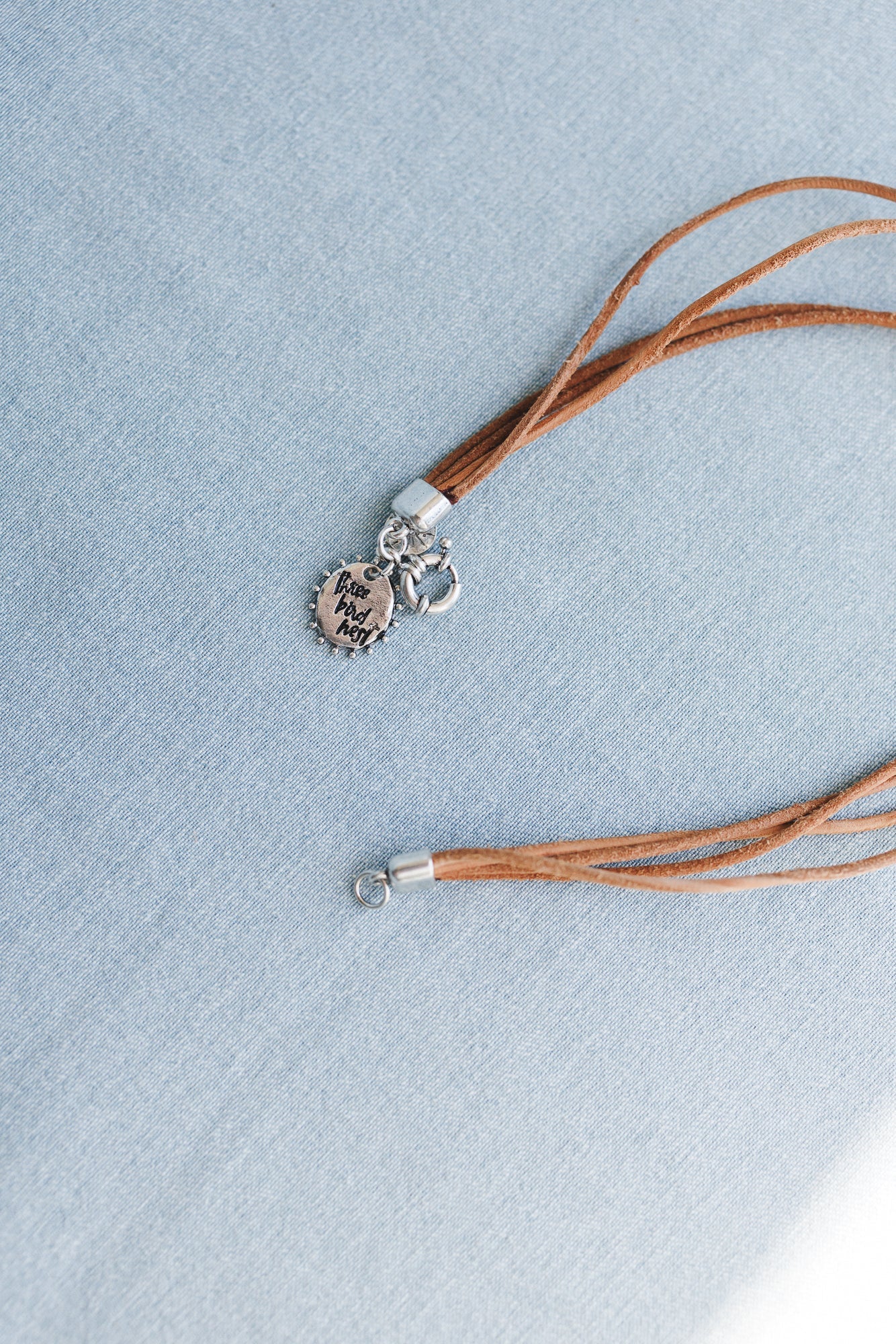 • Triple-strand suede cord in warm caramel brown